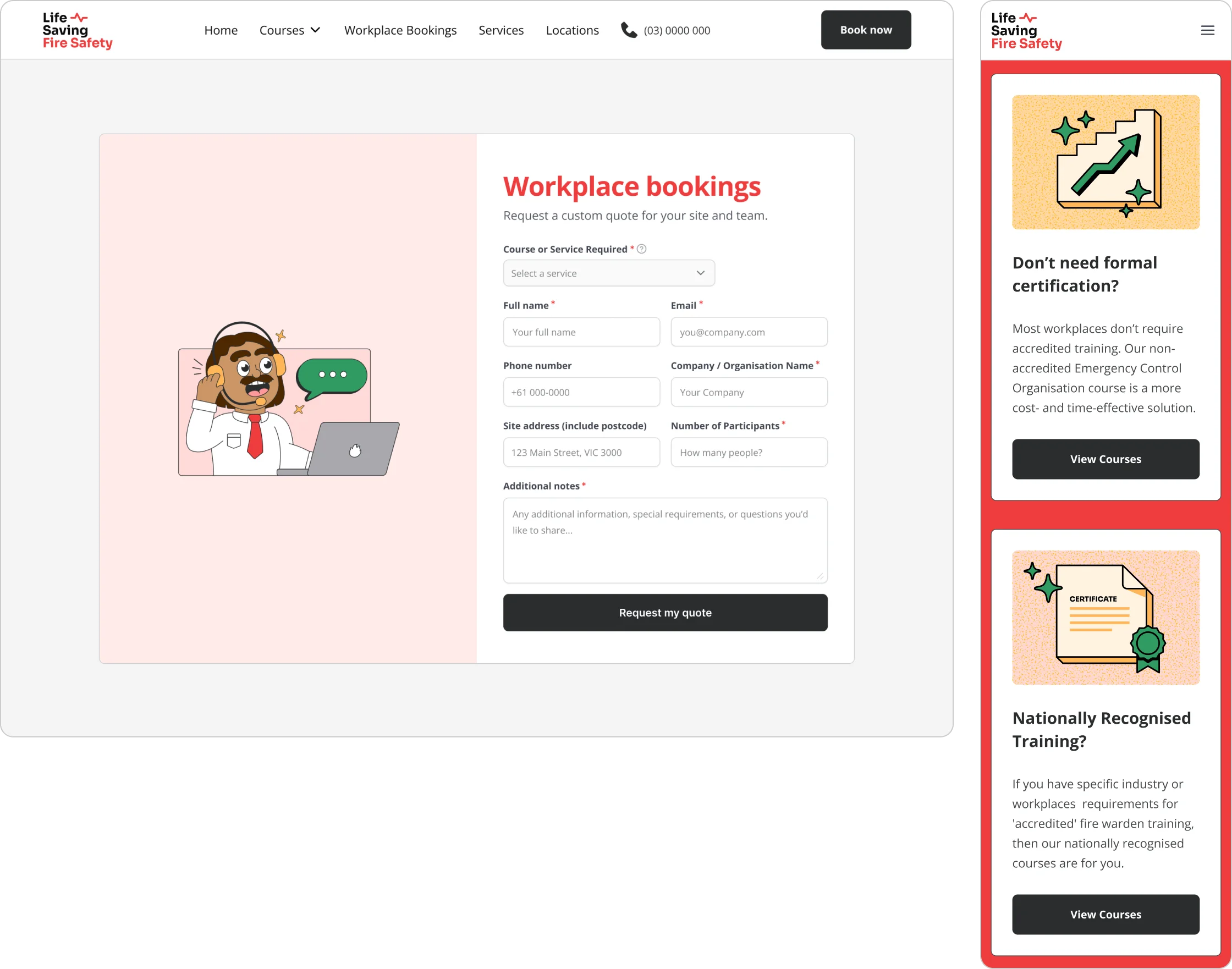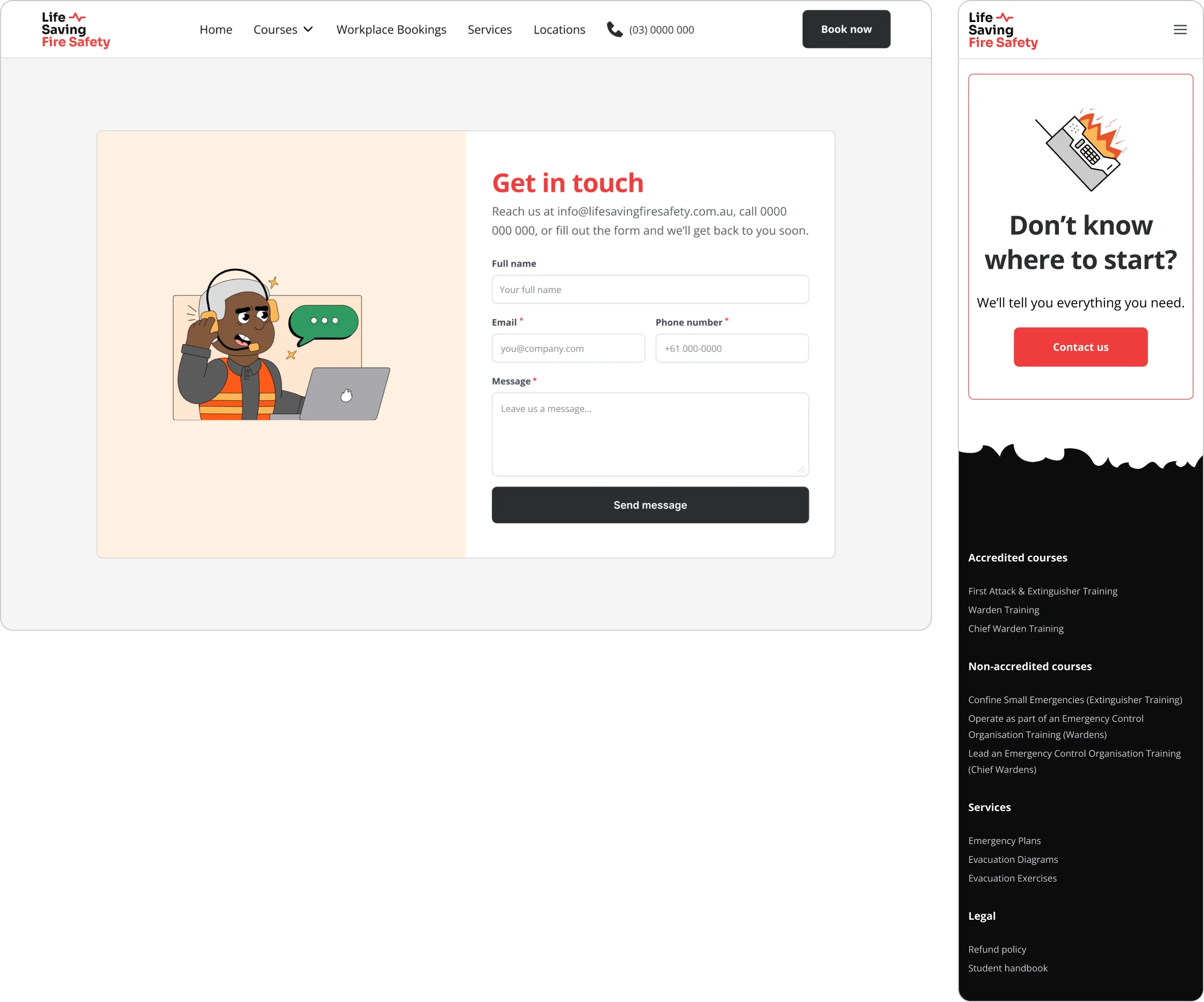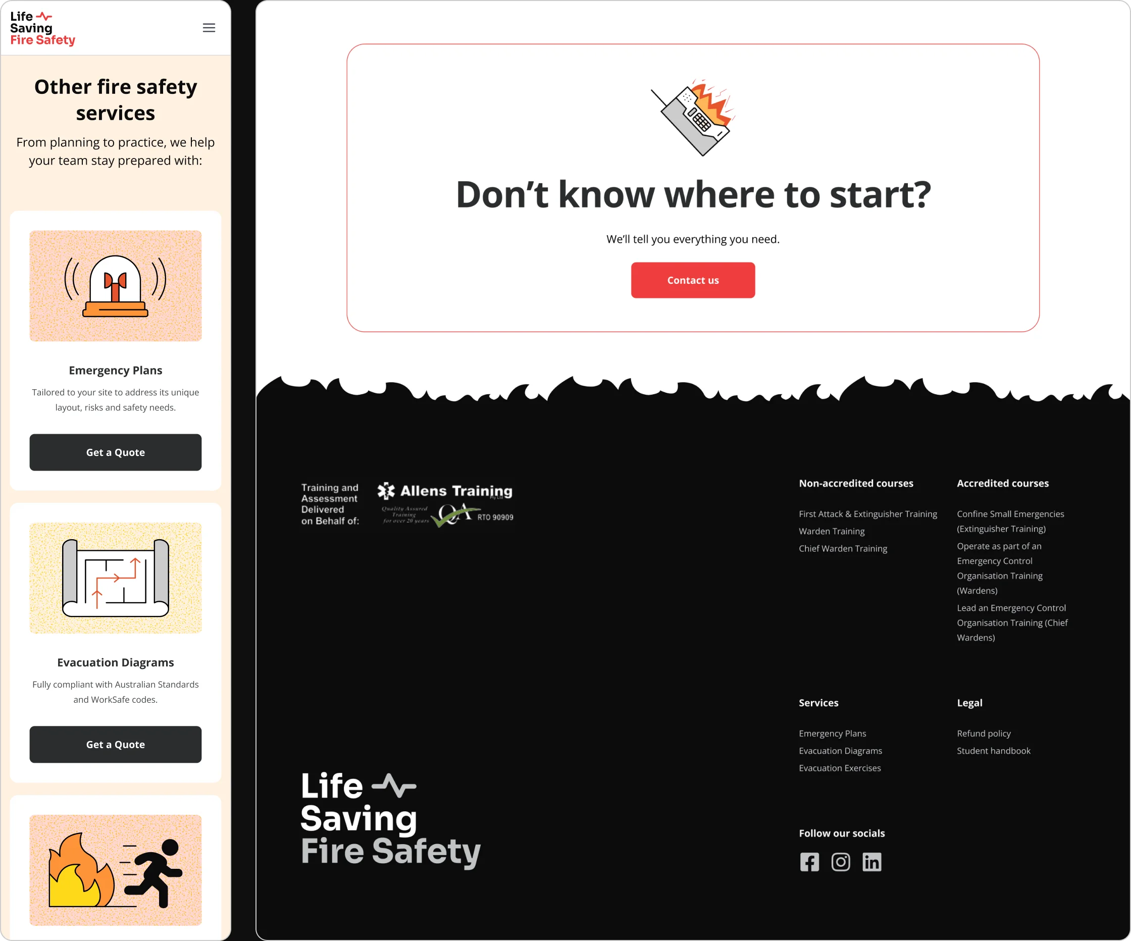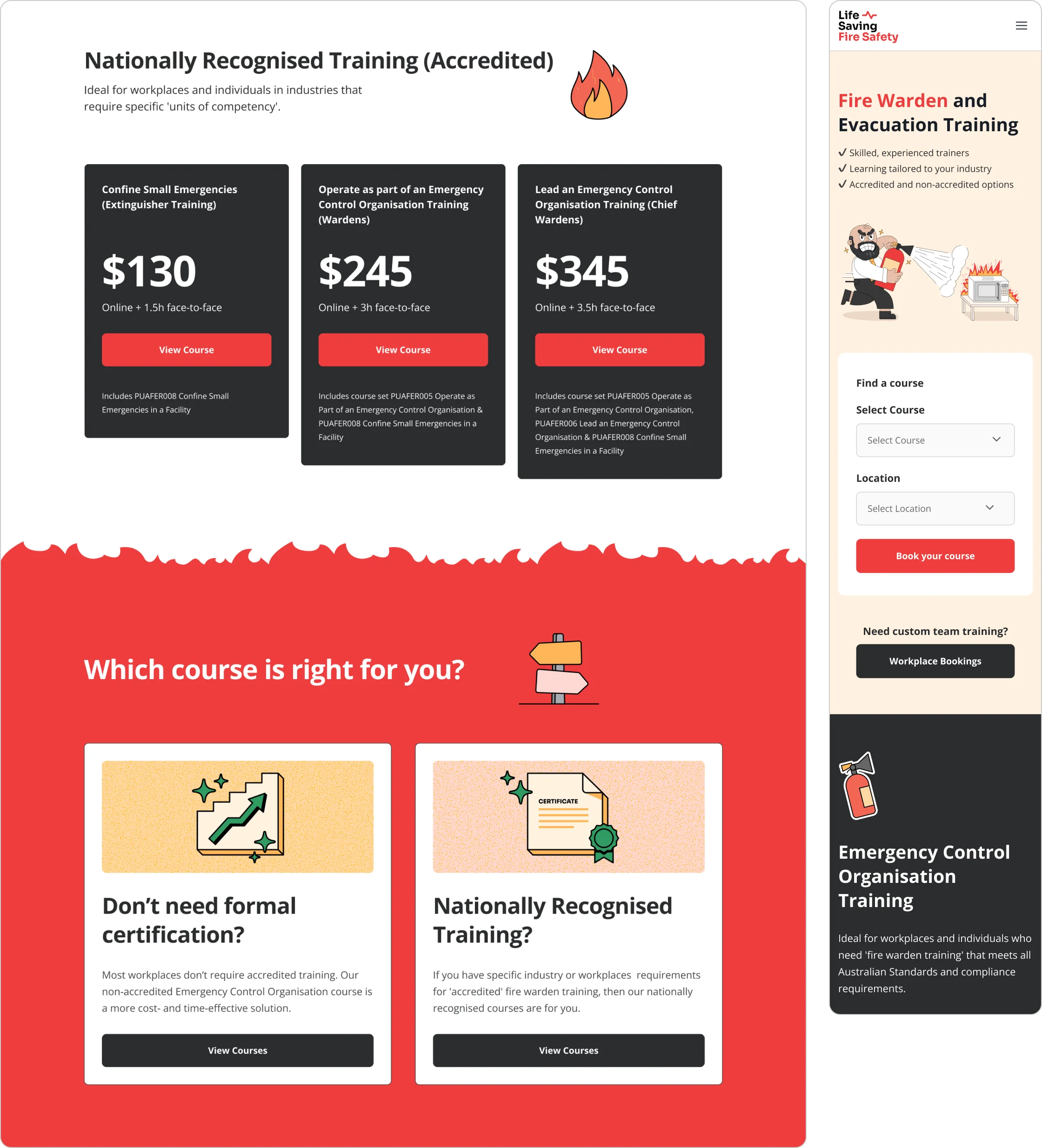 I led the creation of a new sister brand that carried the trust of Life Saving First Aid while standing independently in fire safety. The work included a full brand system, a clear user journey, and a website designed for simple navigation and easy bookings. The design paired bold visuals with approachable illustrations to make the subject matter accessible, while the content structure supported both businesses and the public.